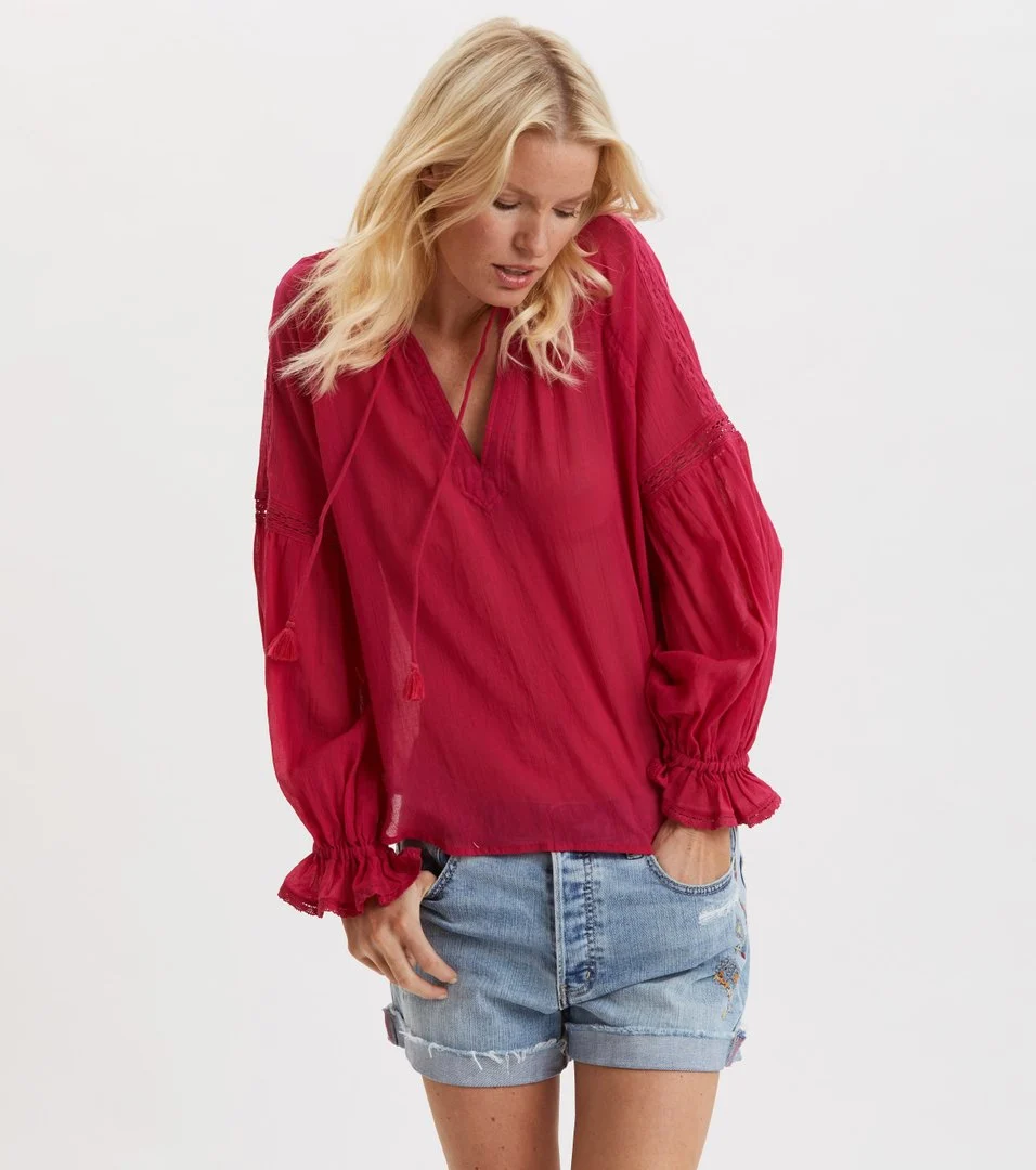 Go for one of our long sleeve blouses with embroideries and add a long skirt or ripped denim jeans.